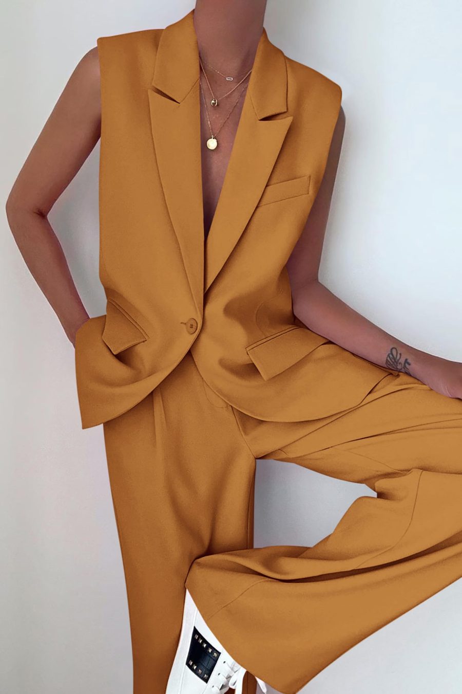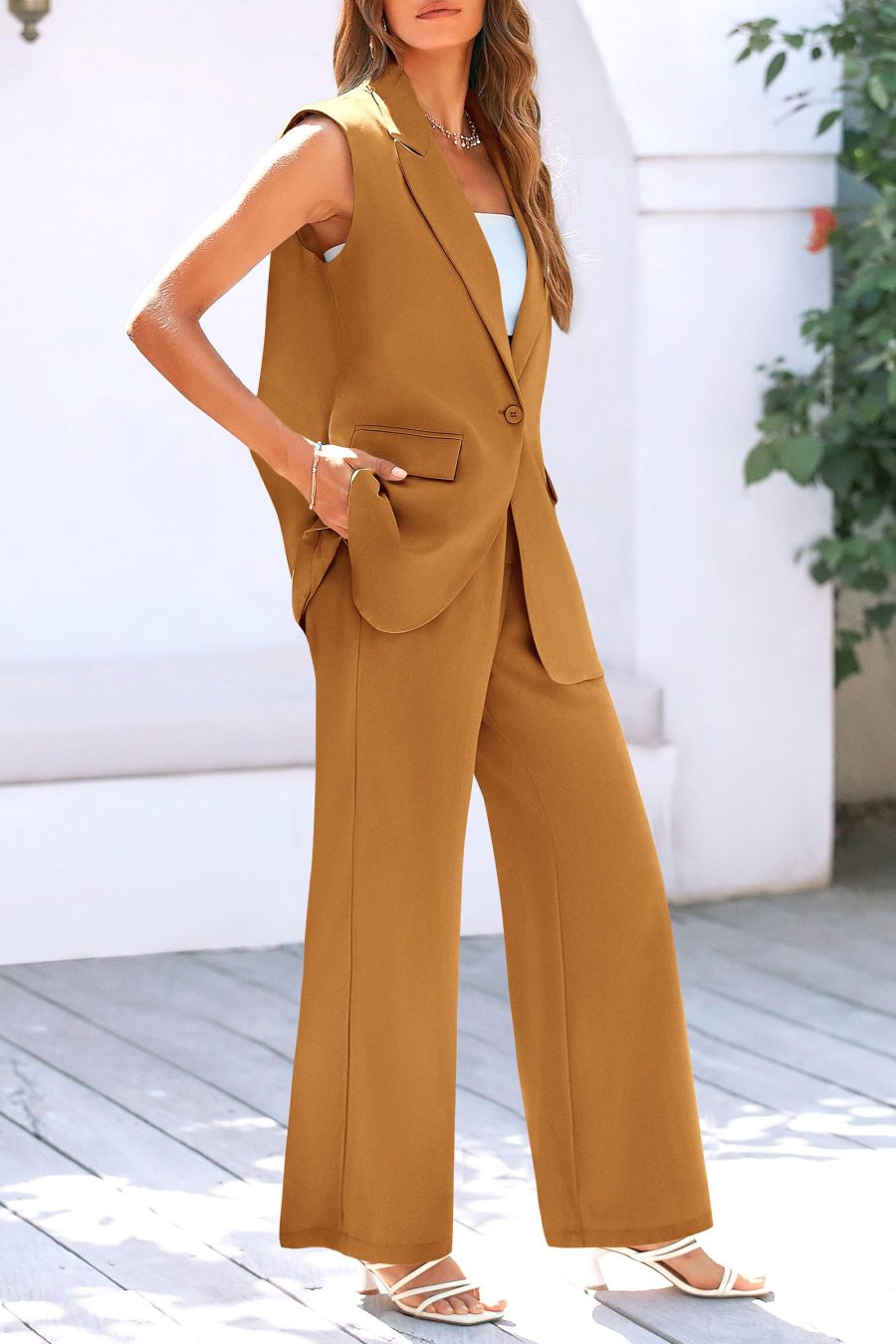 Design: Suit, vest suit jacket and Palazzo pants, with a single button, wide-leg silhouette, comfortable and flattering.