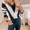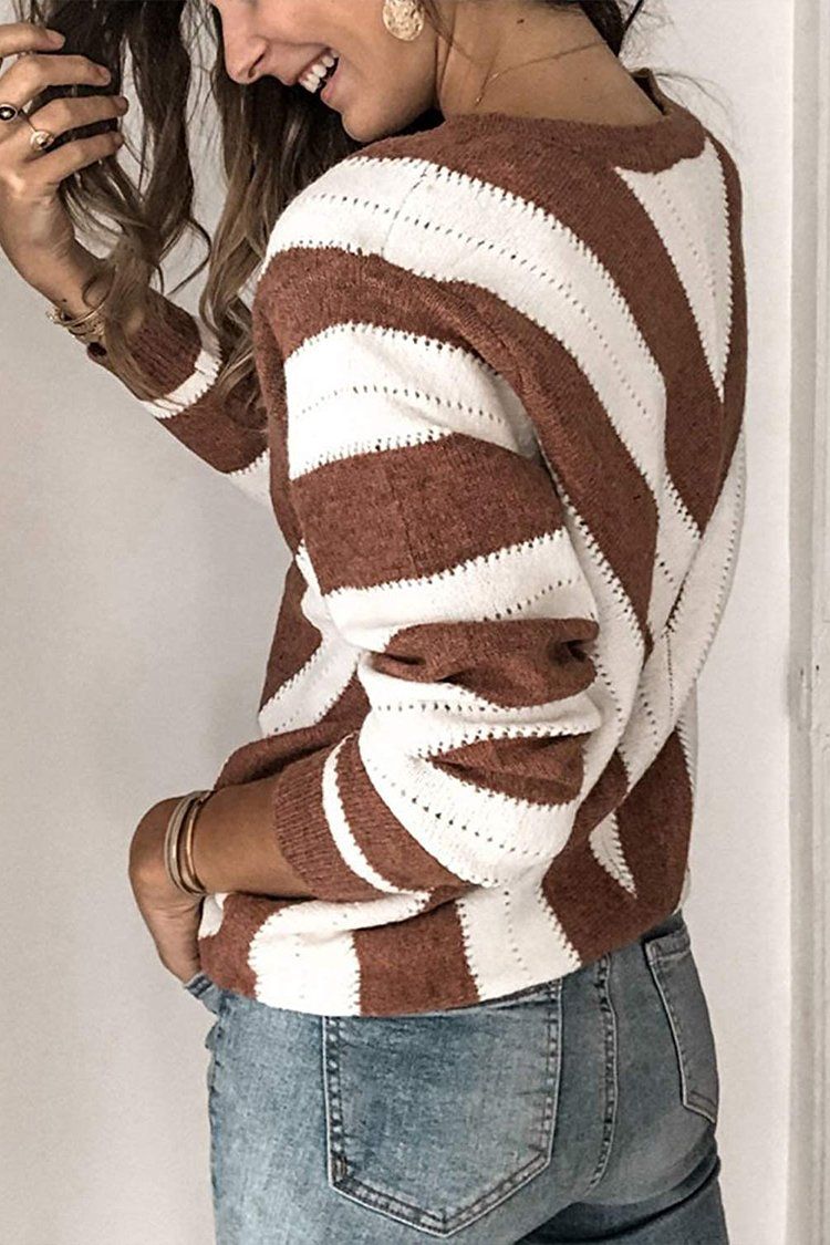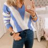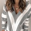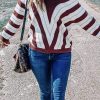 / V Neck Stripe Color Block Loose Oversized Pullover Sweater