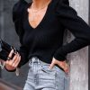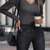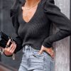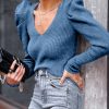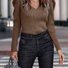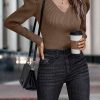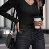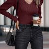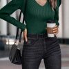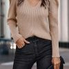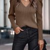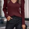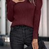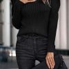 / Womens Long Sleeve Rib Knit Pullover Sweater