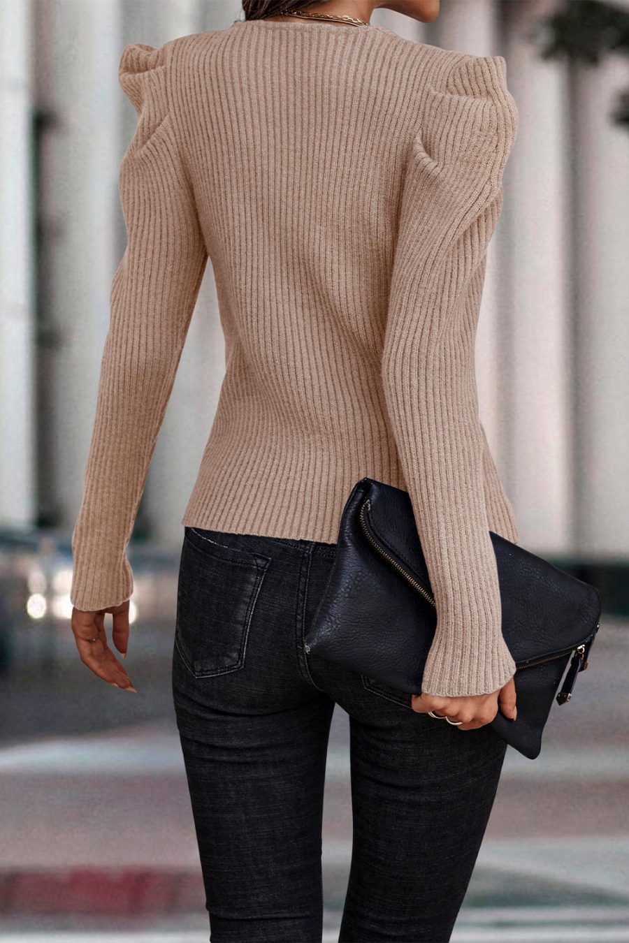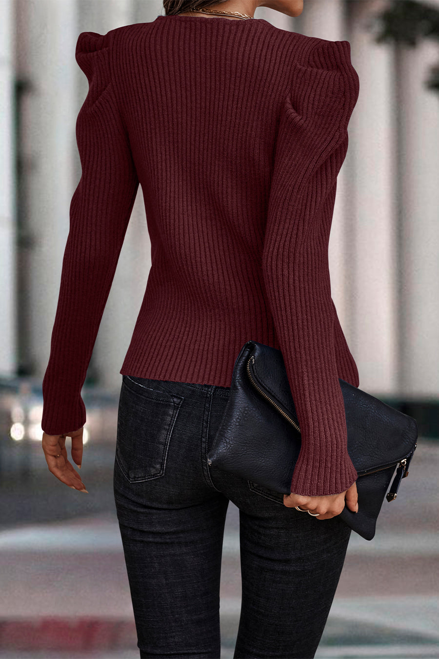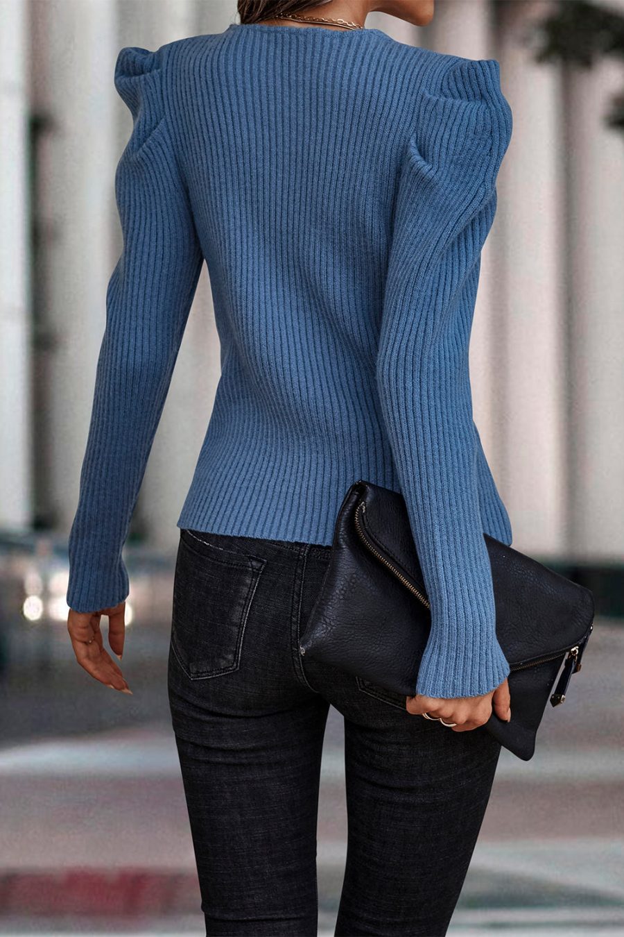 Womens Long Sleeve Rib Knit Pullover Sweater quantity