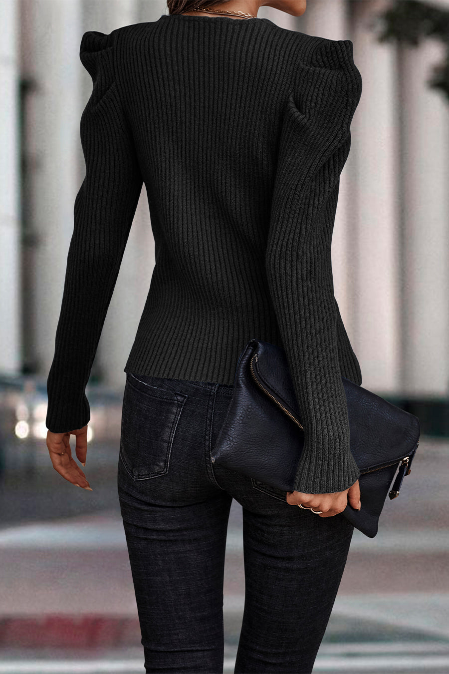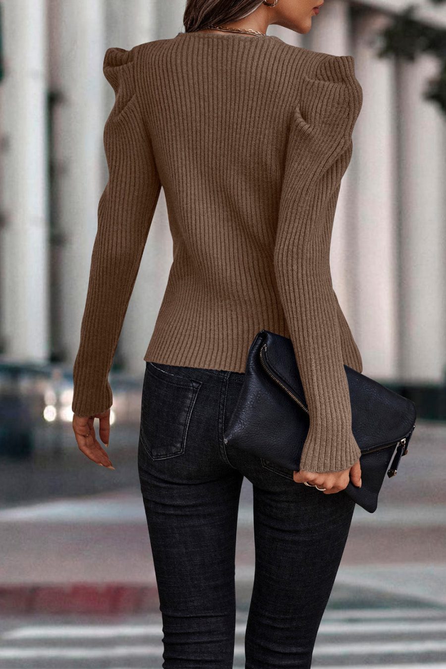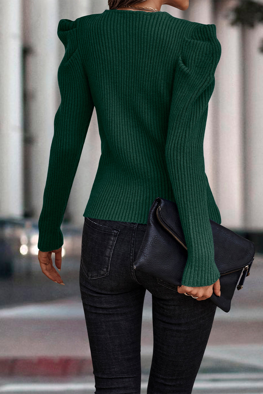 Womens Long Sleeve Rib Knit Pullover Sweater quantity